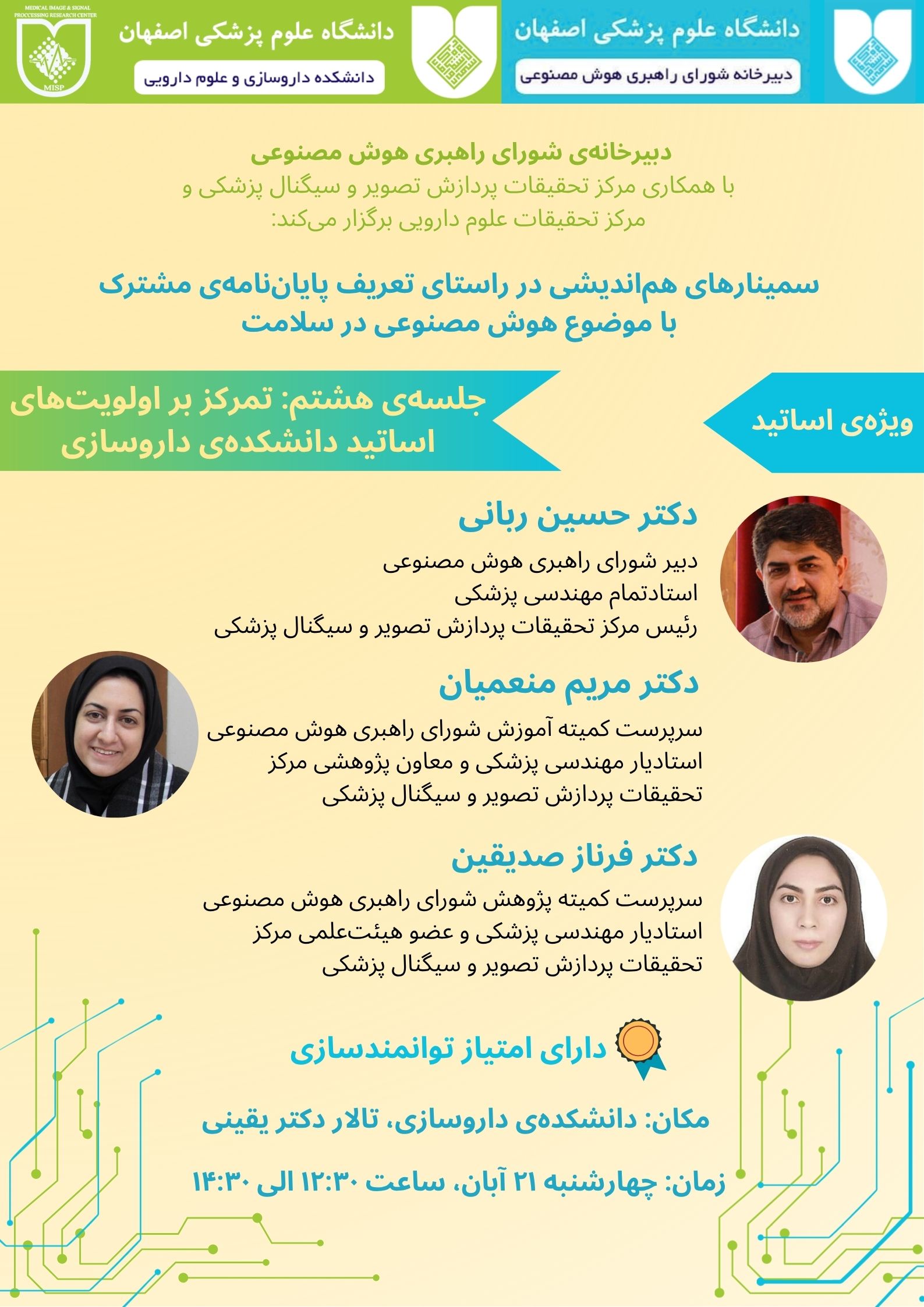 هشتمین سمینار هم اندیشی را با هدف تعریف پایاننامههای مشترک در حوزه هوش مصنوعی در سلامت